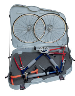Sci-Con Aero Tech Travel Case Minimal disassembly of bicycle required. The AeroTech 71 case protects your investment by shielding your bicycle from hard hits while traveling. The SciCon Aero-Tech is suitable for any kind of frame. Just remove the wheels and saddle and the bike is packed away. Equipped with combination locks, foldaway wheels and handles with anatomical grip. Ideal for air travel! The case is airline and UPS-approved. It measures 45" x 15" x 37" and weighs 30 lbs. Email for current pricing... |